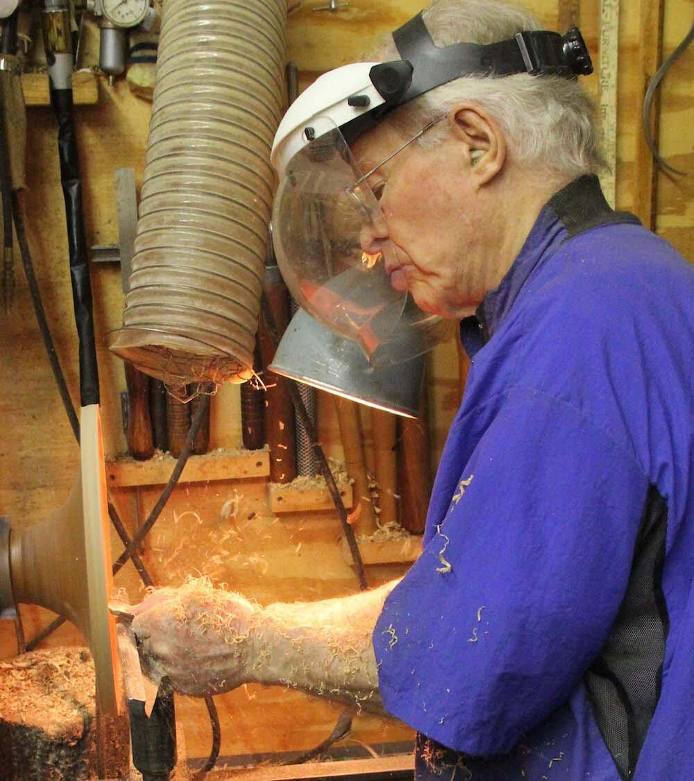 Inherited from her grandfather, Bradley's business now spans two generations of woodturners. Her chosen color palette of soft blues and creams is a gentle callback to those very literal roots in nature, given her job as both a woodworker and a carver. Her website can be found at FineTurnedWood.com.
